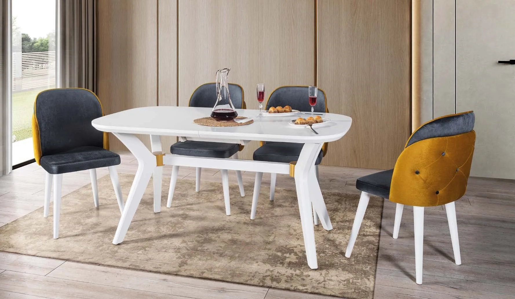 ELİPS SALON BEYAZ MASA TAKIMI