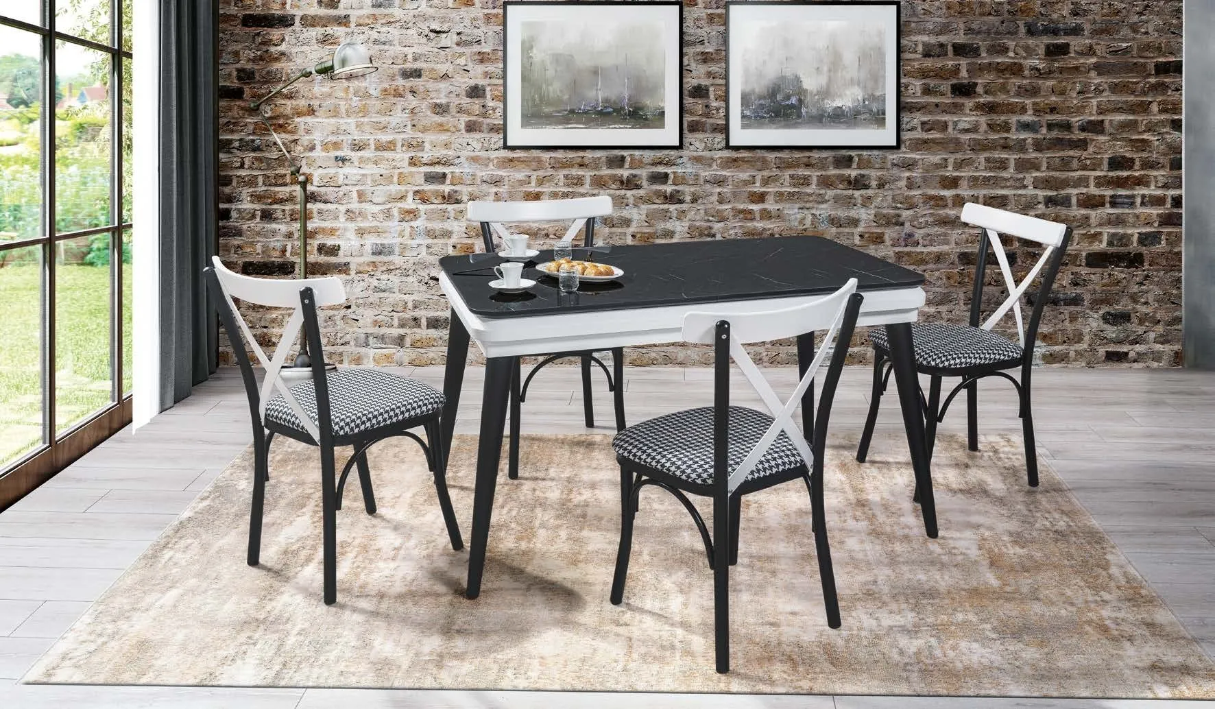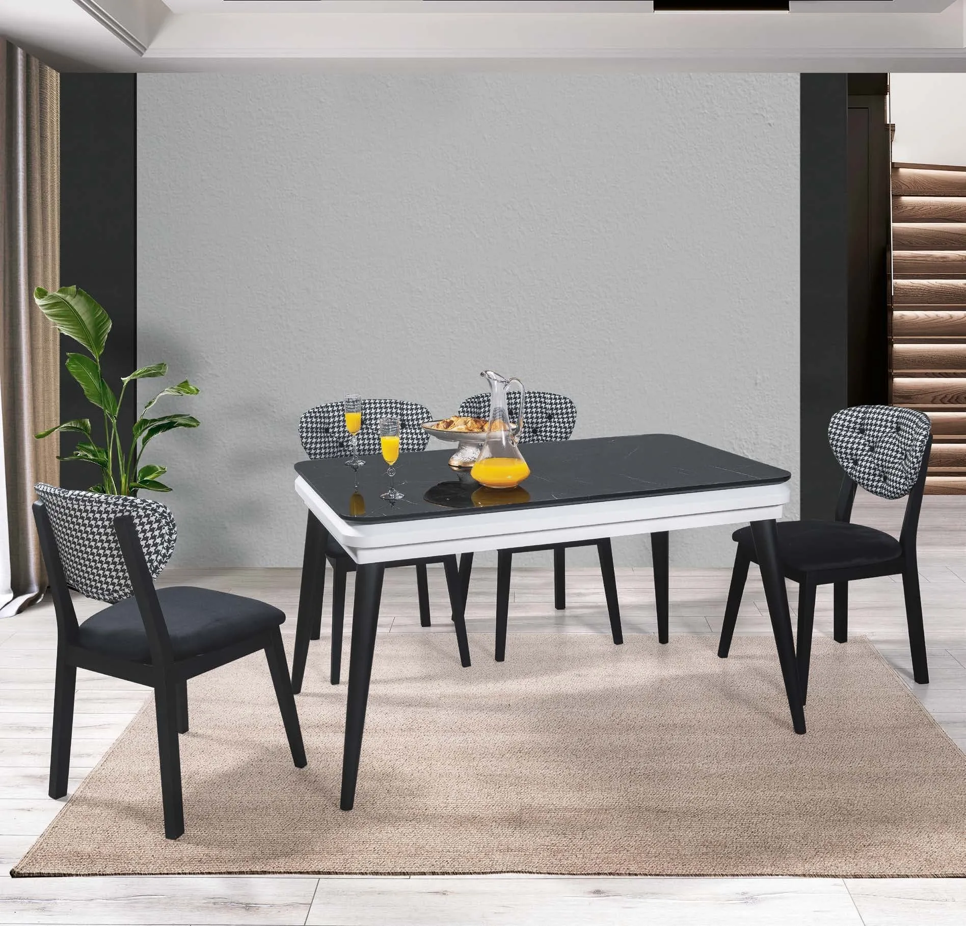MİLANO SİYAH MERMER MASA TAKIMI